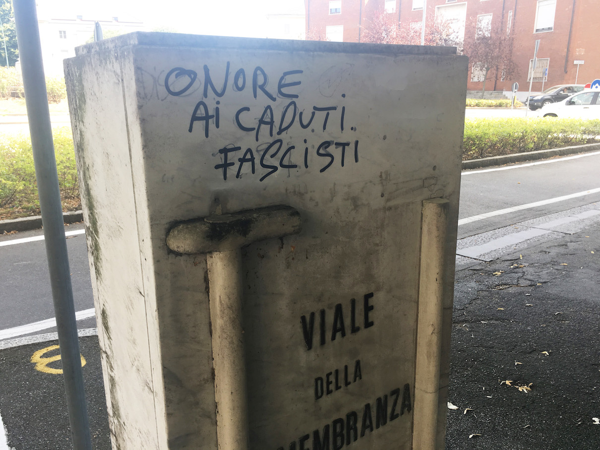 Per chi non lo sapesse -come non lo sapevo io, ma per fortuna a Vercelli c’è chi conosce bene la storia – il Muti a cui l’imbrattatore vorrebbe forse dedicare il viale è tale Ettore Muti, che sì, prese parte alla Prima Guerra Mondiale, ma non certo con più “onore” di tanti altri. Ritornò dalla guerra vivo e vegeto, a differenza dei caduti che il viale vorrebbe ricordare, e in seguito fu un convinto sostenitore del fascismo. Nel vercellese il suo nome è rimasto alla memoria per essere associato ad una legione fascista che qui operò brutalmente durante la Resistenza.